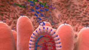 Figure 2: Proteoral® triggers an innocuous temporary opening of the intestinal wall’s intercellular junctions. Imagen 2: Proteoral® esencadena la apertura temporal inocua de las uniones intercelulares de la pared intestinal.