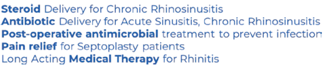 A natural next step from CRS treatment is use of the steroid-loaded polymer for decreasing inflammation in allergic and non-allergic rhinitis patients. Similarly, loading of the polymer with antibiotics in place of steroids could introduce a new paradigm for targeted antibiotic delivery to the sinonasal cavity. Looking to the ENT space more broadly, there are myriad clinical needs that could be addressed by such a technology (Figure 3).