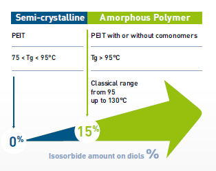 Figure 3: Incorporating isosorbide addresses an important constraint of PET, efficiently increasing Tg.