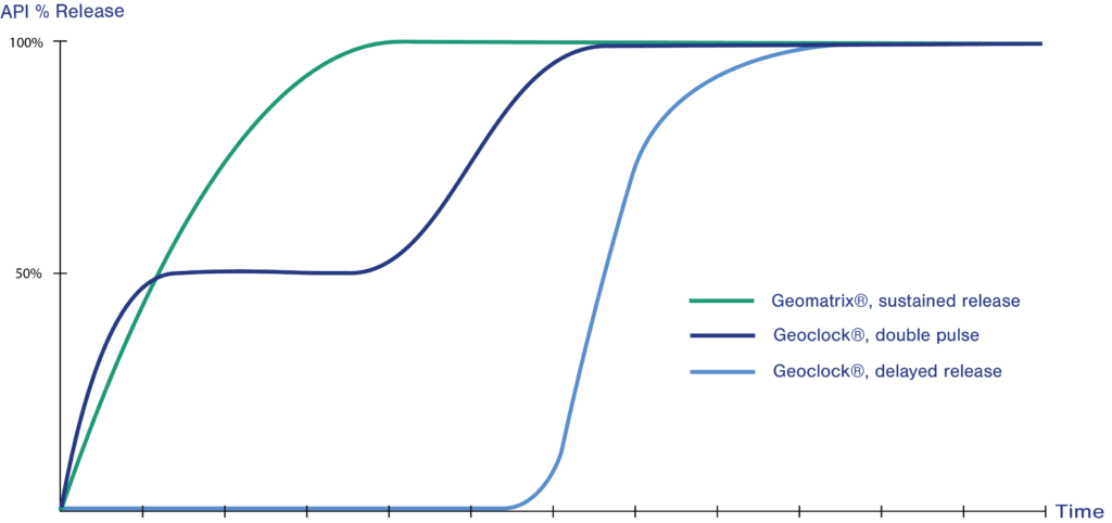 Figure 1: Examples of dissolution profiles obtained with Geomatrix® and Geoclock® technologies.