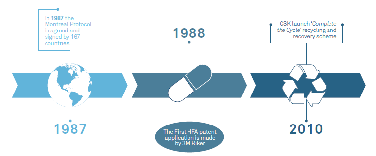 Figure 1: Environmental milestones in respiratory drug delivery.