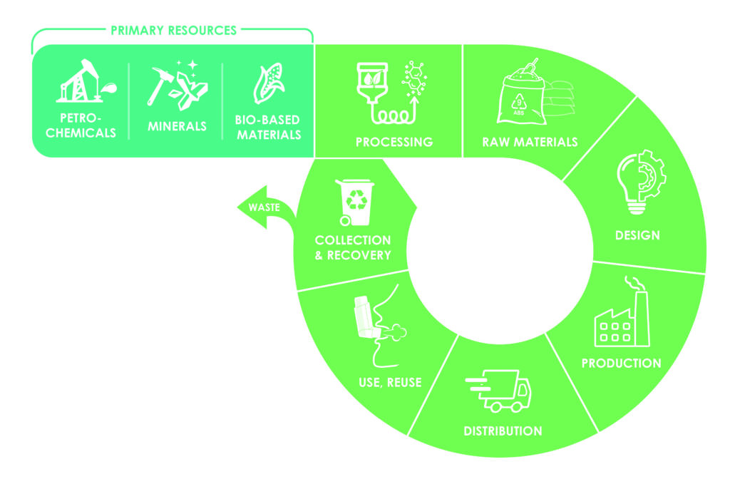 Most drug delivery devices are made predominantly from plastics, so careful selection of these materials is important when targeting more sustainable solutions. Following the principles of the circular economy, we can break this down into three aspects for consideration: