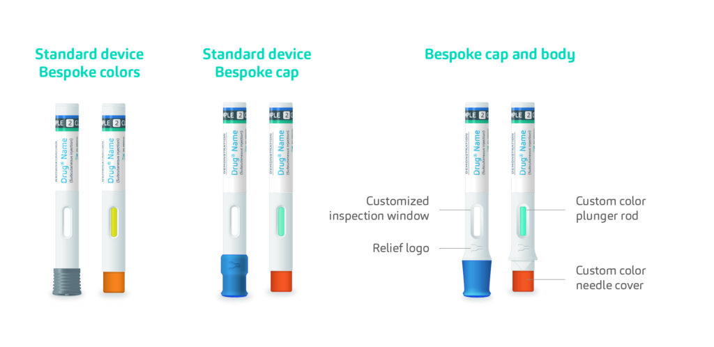 Recent studies indicate the need for self-injection devices that offer a wide range of customisations in line with the intended purpose of each drug delivery device. For example, a 2011 research paper investigated the ability of US patients with diabetes to distinguish between pen injectors based on the same device platform. Interestingly, the researchers found that device differentiation by full pen device colouring, rather than solely label colour, enhances the patient’s ability to differentiate the devices.14 These findings provide insights into the critical importance of autoinjector platforms that offer holistic design adjustments or a completely bespoke industrial design, all the while being enabled by standard internal parts built upon a robust device technology.