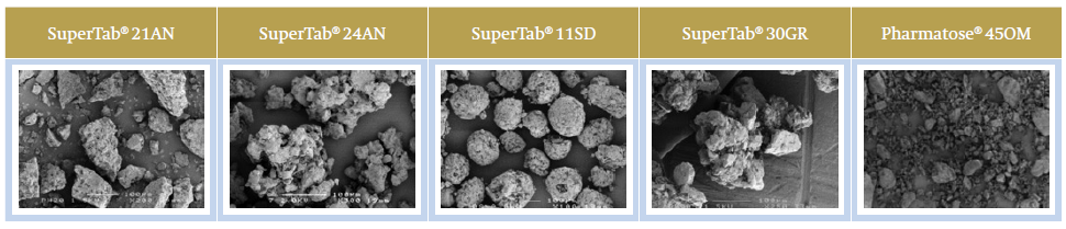 | SuperTab® 21AN | SuperTab® 24AN | SuperTab® 11SD | SuperTab® 30GR | Pharmatose® 45OM | |